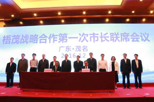 12月22日,在茂名市市委書記許光、市長(zhǎng)李紅軍,梧州市市長(zhǎng)朱學(xué)慶等領(lǐng)導(dǎo)的見證下,茂名港集團(tuán)董事長(zhǎng)劉乃英與廣西西江開發(fā)投資集團(tuán)梧州投資有限公司董事長(zhǎng)呂偉東在茂名市市民中心簽署了戰(zhàn)略合作框架協(xié)議。