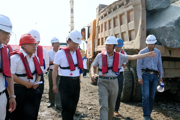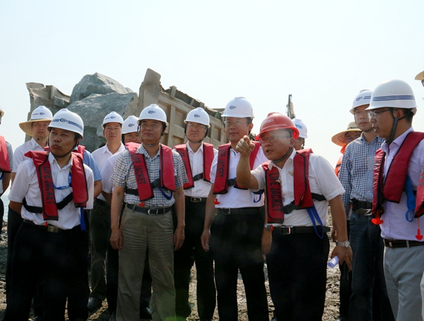 (市長許志暉一行察看西防波堤合龍現(xiàn)場) 許志暉對茂名港集團(tuán)所取得的成績表示肯定,他指出,茂名港集團(tuán)在濱海新區(qū)乃至茂名經(jīng)濟(jì)建設(shè)發(fā)展過程中責(zé)任重大,需繼續(xù)加強(qiáng)人才的引進(jìn)、培養(yǎng),打造高素質(zhì)管理隊(duì)伍;加強(qiáng)與一流企業(yè)的合作,把握好發(fā)展機(jī)遇,繼續(xù)做大做強(qiáng),發(fā)揮國有企業(yè)的龍頭作用。