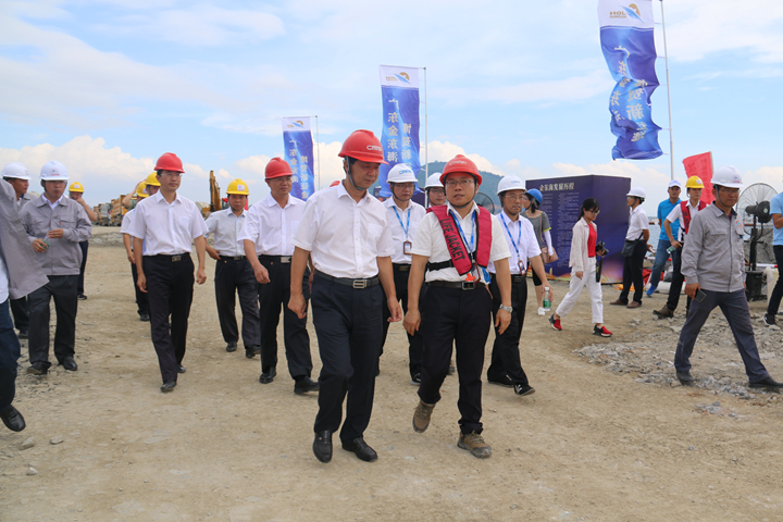 在粵西LNG造陸項目現(xiàn)場,趙廣輝一行認真聽取了項目業(yè)主單位和施工方對項目相關(guān)情況的介紹,并仔細詢問項目規(guī)劃建設相關(guān)情況。他指出,該項目是濱海新區(qū)的一個大項目,是廣大群眾普遍關(guān)注的重點工程,對于提升濱海新區(qū)形象、發(fā)展臨港產(chǎn)業(yè)具有重要意義。希望施工方和業(yè)主方算好時間賬、任務賬,高標準建設、高質(zhì)量管理,以更有力的舉措破解難題,按照時間節(jié)點統(tǒng)籌安排,確保如期順利完成建設任務。