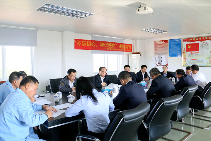 在中油王港公司,劉乃英認真察看了中油王港公司中控室升級改造技改項目,并召開座談會,認真聽取中油王港公司工作情況匯報。他指出,中油王港公司在港口行業(yè)不景氣的環(huán)境下克服困難、敢于擔當、積極作為,通過“走出去”積極融入粵港澳大灣區(qū)、北部灣經(jīng)濟區(qū),實現(xiàn)了營收與利潤的逆市上揚,成績靚麗,以實際行動踐行了初心使命。他強調(diào),中油王港公司要通過技術(shù)改造升級,進一步深挖潛力,打破傳統(tǒng)人手操作桎梏,實現(xiàn)庫區(qū)作業(yè)信息化管理;要做好經(jīng)營風險、施工安全風險、生產(chǎn)安全風險的防控,確保安全與發(fā)展兩手抓、兩不誤;要以中油王港公司為基地,為集團未來在博賀新港區(qū)的智慧港口建設(shè)培養(yǎng)人才、積累經(jīng)驗。