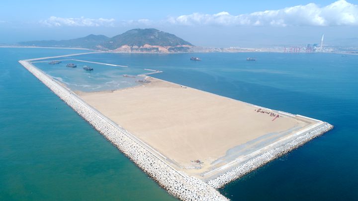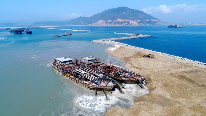 現(xiàn)場所見,大型抽沙作業(yè)船開足馬力,往來穿梭作業(yè)。據(jù)悉,粵西LNG造陸項目已形成陸域面積400畝,項目初現(xiàn)規(guī)模。