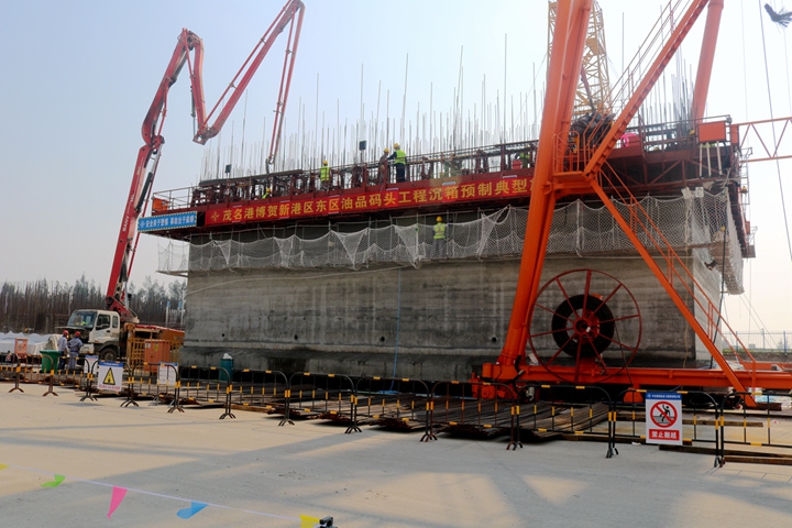 歷經4天連續(xù)不斷的施工,茂名港博賀新港區(qū)東區(qū)油品碼頭工程首件沉箱混凝土澆筑施工于4月30日下午順利完成!