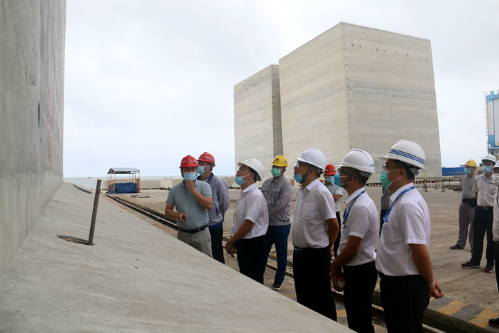 5月29日上午,集團黨委書記、董事長劉乃英率隊到博賀新港區(qū)深入調(diào)研督導集團重點項目建設(shè)情況,詳細了解各參建單位疫情防控措施,并實地察看了各項目建設(shè)進展情況。集團副總裁楊超燦陪同調(diào)研。