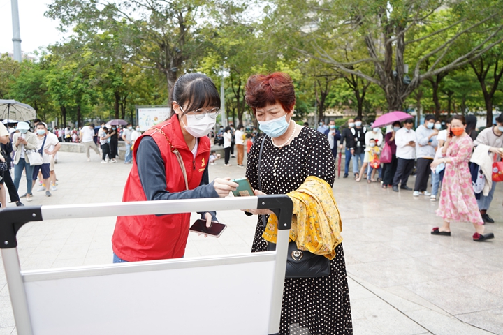 3月27日,為保障群眾核酸采樣秩序正常,根據(jù)上級安排,集團黨委組織黨員志愿服務隊火速前往南香公園采樣點支援全員核酸檢測工作,讓黨旗在防控疫情斗爭第一線高高飄揚。 集團黨員志愿者們按計劃時間提前一小時到采樣點,向醫(yī)務人員虛心學習,了解檢測服務工作中最常見的問題及解決方法,確保能夠為現(xiàn)場群眾提供最迅速準確的志愿服務。采樣開始后,集團黨員志愿服務隊隊員們奔走忙碌于人流中,有序地疏導人流、維護秩序,督促廣大群眾遵守公共場所戴口罩、不聚集、保持1米線等規(guī)定。服務中,志愿者們?yōu)槿罕姶鹨山饣、消除顧慮、安撫緊張情緒,并指引和幫助群眾們打開核酸檢測小程序做好信息錄入等工作。