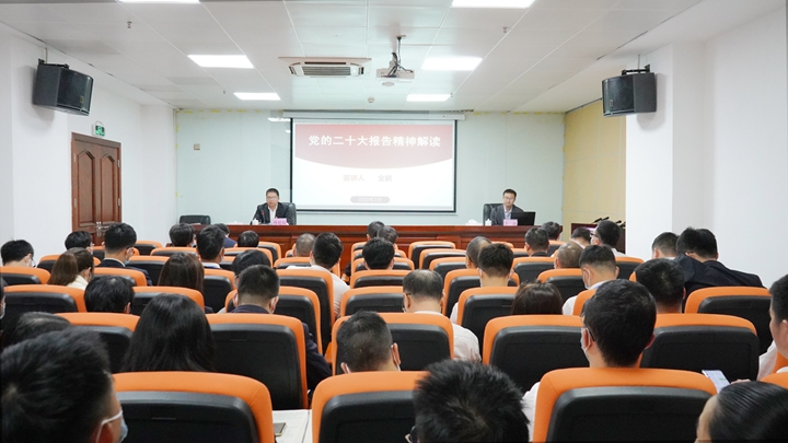 為深入學(xué)習(xí)宣傳貫徹黨的二十大精神,持續(xù)掀起學(xué)習(xí)熱潮,3月15日,茂名港集團(tuán)舉辦黨的二十大精神宣講報(bào)告會(huì),邀請(qǐng)廣東石油化工學(xué)院馬克思主義學(xué)院博士、講師金鵬作專(zhuān)題宣講。集團(tuán)黨委書(shū)記、董事長(zhǎng)王志華,集團(tuán)黨委委員、副總裁楊超燦,集團(tuán)黨委委員、紀(jì)委書(shū)記、監(jiān)察專(zhuān)員陳軍,集團(tuán)總裁助理李昱祺出席宣講會(huì),集團(tuán)各黨支部委員和機(jī)關(guān)全體職工約70人參加宣講會(huì)。