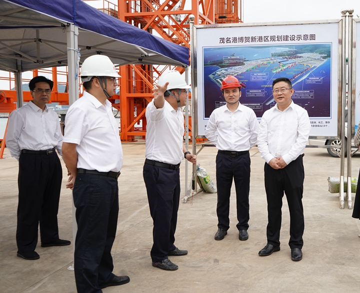 為貫徹落實“十四五”口岸發(fā)展規(guī)劃,進一步推進茂名市口岸重點項目建設。近日,廣東省商務廳黨組成員、副廳長何軍一行到吉達港區(qū)、博賀新港區(qū)開展口岸相關調研工作,市商務局局長楊曦,濱海新區(qū)黨工委副書記黃永,集團黨委書記、董事長王志華陪同調研。