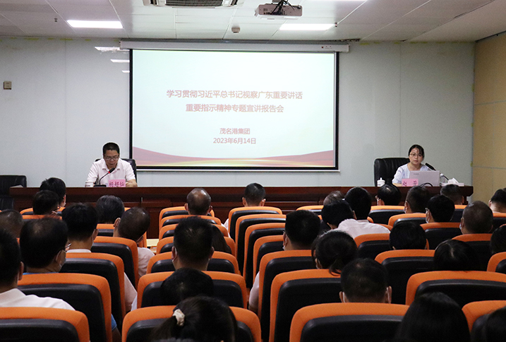 為深入學(xué)習(xí)貫徹習(xí)近平總書(shū)記視察廣東重要講話(huà)重要指示精神,引導(dǎo)廣大黨員干部職工學(xué)思踐悟、學(xué)以致用,凝聚思想共識(shí)。6月14日,茂名港集團(tuán)組織開(kāi)展學(xué)習(xí)貫徹習(xí)近平總書(shū)記視察廣東重要講話(huà)重要指示精神專(zhuān)題宣講報(bào)告會(huì),會(huì)議邀請(qǐng)茂名市委宣講團(tuán)成員、廣東石油化工學(xué)院馬克思主義學(xué)院講師趙芳作專(zhuān)題宣講。集團(tuán)黨委書(shū)記、董事長(zhǎng)王志華,集團(tuán)黨委委員、副總裁楊超燦,集團(tuán)黨委委員、紀(jì)委書(shū)記、監(jiān)察專(zhuān)員陳軍,集團(tuán)副總裁李昱祺出席宣講會(huì),集團(tuán)各黨支部黨員代表和機(jī)關(guān)全體職工約70人參加宣講會(huì)。