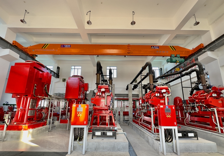 據(jù)悉,本次油品碼頭項(xiàng)目在公用工作樓設(shè)置了“三常三備”消防泵組,即三臺(tái)常用的電動(dòng)消防泵和三臺(tái)備用的柴油消防泵,通過(guò)架設(shè)在公共管廊上聯(lián)通公用工作樓消防泵房和碼頭泊位的消防炮塔的消防管道,為博賀新港區(qū)東區(qū)13個(gè)液體化工品碼頭提供消防海水,這是整個(gè)港區(qū)東區(qū)消防系統(tǒng)的核心組成部分,對(duì)保障碼頭的安全生產(chǎn)運(yùn)營(yíng)的有著重大意義。電動(dòng)消防泵和柴油消防泵兩個(gè)重要消防設(shè)備均采用 UL/FM 雙認(rèn)證企業(yè)的產(chǎn)品,其產(chǎn)品技術(shù)水平和認(rèn)證參數(shù)范圍,在國(guó)內(nèi)乃至全球同行中均處于領(lǐng)先水平。該消防泵采用了10KV高壓供電,功率達(dá)到800KW,多級(jí)離心長(zhǎng)軸的結(jié)構(gòu)使得整個(gè)泵組高度達(dá)17米、重量達(dá)10噸。矗立在碼頭前沿的兩座高達(dá)17米的消防炮塔,同時(shí)擁有電動(dòng)消防水炮和電動(dòng)泡沫炮,具備就地操控、無(wú)線操控和消防控制室操控三種操控方式,并且炮塔的噴射半徑達(dá)100米,足以應(yīng)付海上出現(xiàn)的各種險(xiǎn)情。 在單機(jī)試運(yùn)行前,油品碼頭黨支部充分發(fā)揮項(xiàng)目一線戰(zhàn)斗堡壘作用,組織業(yè)主單位生產(chǎn)部、施工單位、監(jiān)理單位、設(shè)備廠家對(duì)機(jī)泵設(shè)備單機(jī)試運(yùn)行方案進(jìn)行了數(shù)輪嚴(yán)格的會(huì)審,研究討論了方案內(nèi)容存在的問(wèn)題并提出了修改意見和建議,并對(duì)方案中涉及到的重點(diǎn)工作、具體事項(xiàng)進(jìn)行了安排。
