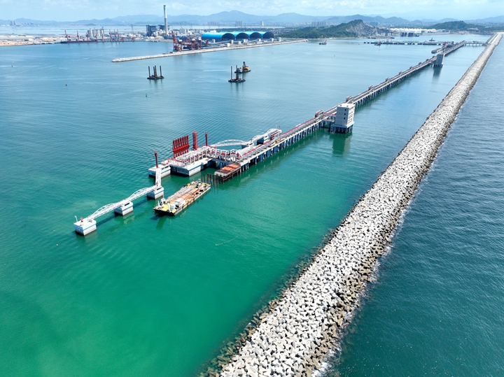 茂名港集團(tuán)自2012年成立以來,緊緊圍繞“建深水大港、興濱海綠城”的戰(zhàn)略,一步接著一步,以實干興港,把藍(lán)圖轉(zhuǎn)化為實景圖,吸引了一批國內(nèi)外龍頭企業(yè)落子茂名,逐步形成集群。目前,博賀新港區(qū)4個大型泊位(1個10萬噸級成品油碼頭、3個1~5萬噸級化工碼頭)、4.38公里配套管廊、81萬立方米油品化工庫區(qū)及現(xiàn)代化的港務(wù)中心建成即將投用。
