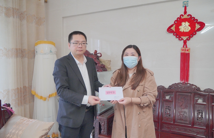 集團黨委委員、副總裁楊超燦帶隊到患病職工鄧嬋的家中進行慰問。期間與鄧嬋進行了親切的交談,詢問了她術(shù)后的身體情況、恢復(fù)進展,鼓勵她要樹立信心、保持樂觀向上的陽光心態(tài),囑咐她安心養(yǎng)病,并祝愿她早日康復(fù)!